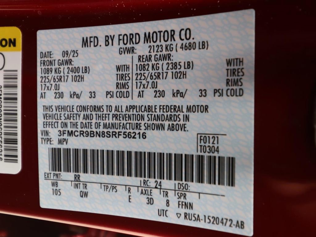 Ruby Red Metallic Tinted Clearcoat 2025 Ford Bronco Sport Big Bend 4WD 8-Speed Automatic 1.5L EcoBoost