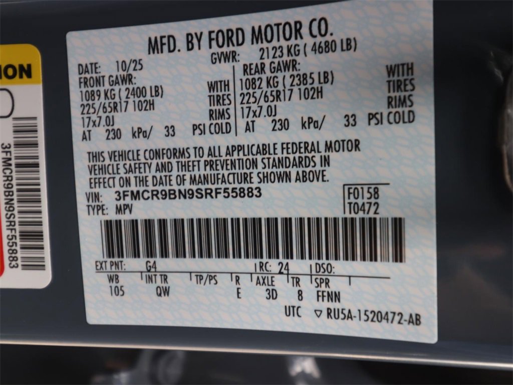 • VIN # 3FMCR9BN9SRF55883