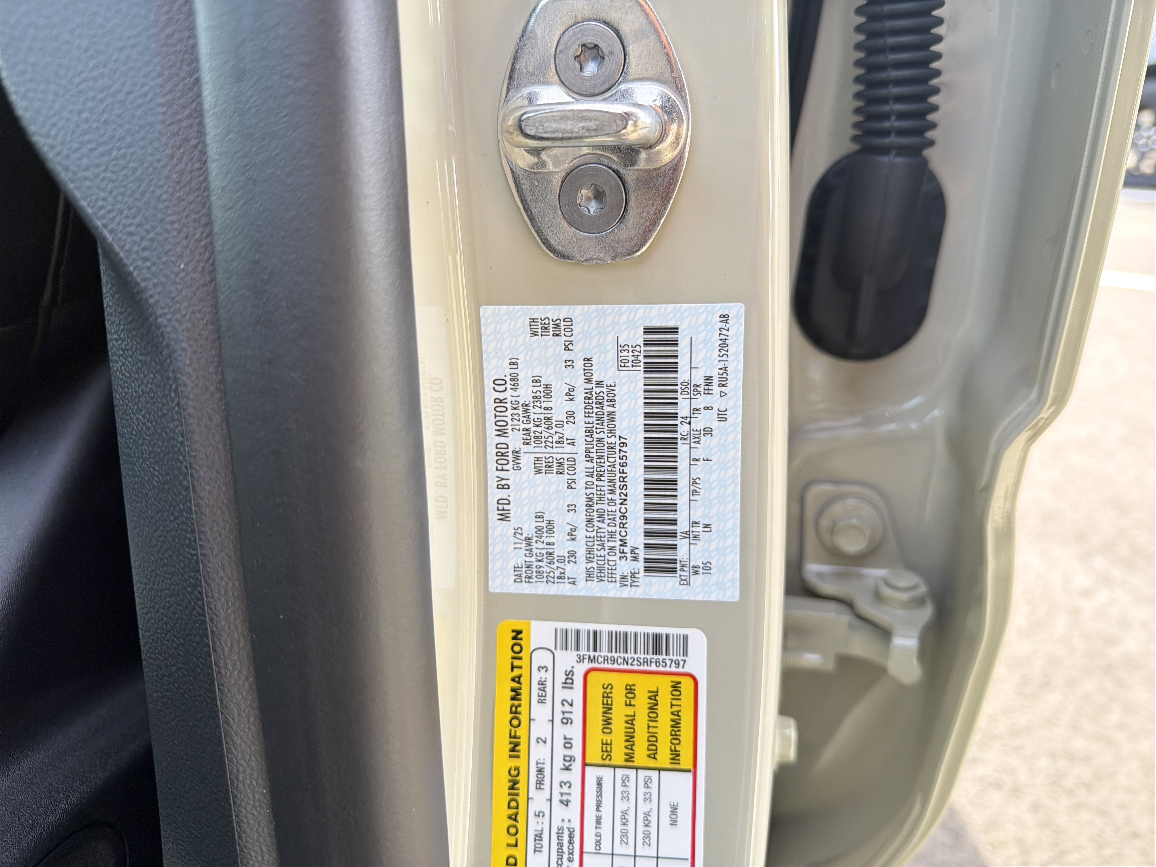 • VIN # 3FMCR9CN2SRF65797