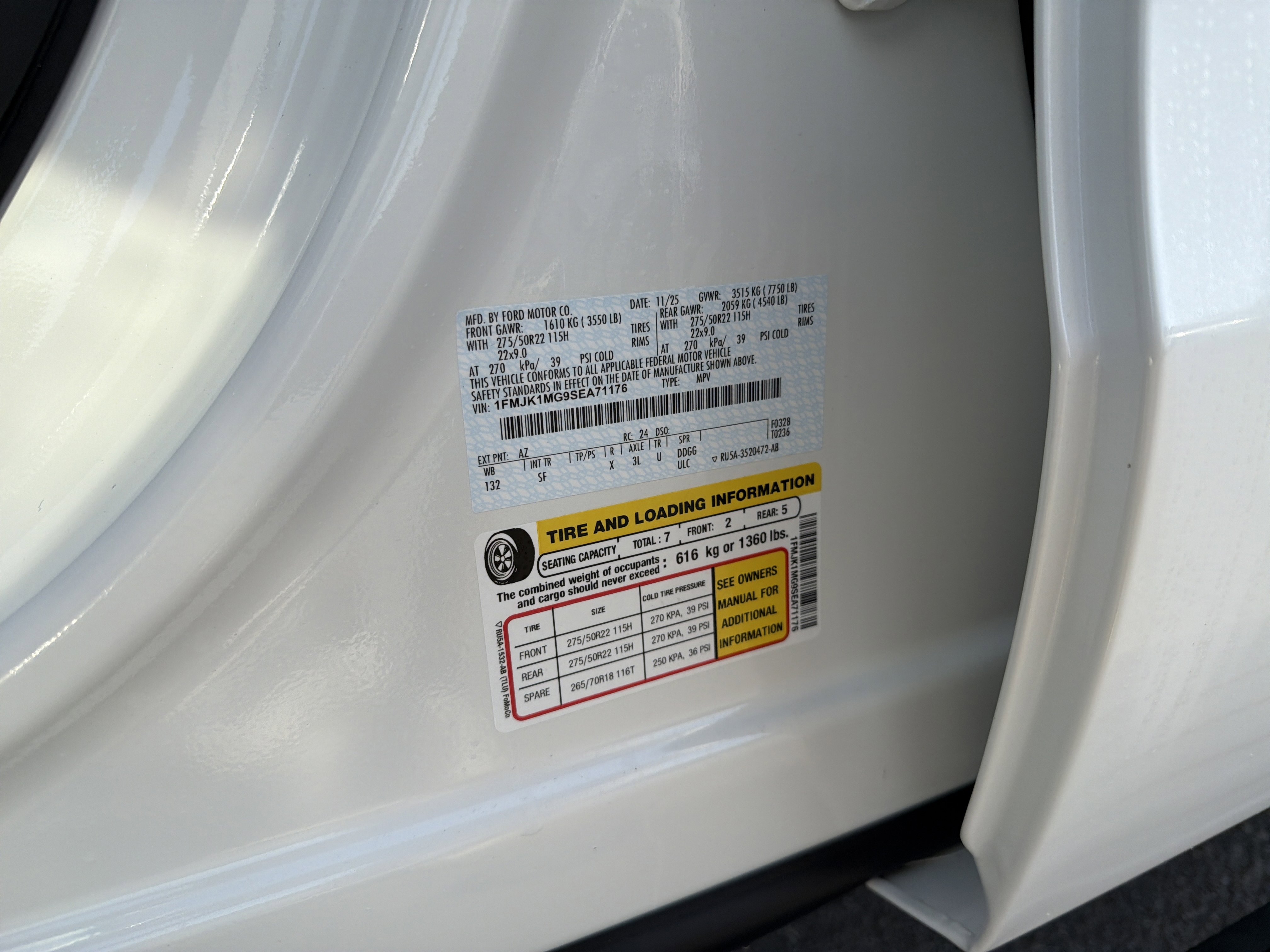 • VIN # 1FMJK1MG9SEA71176