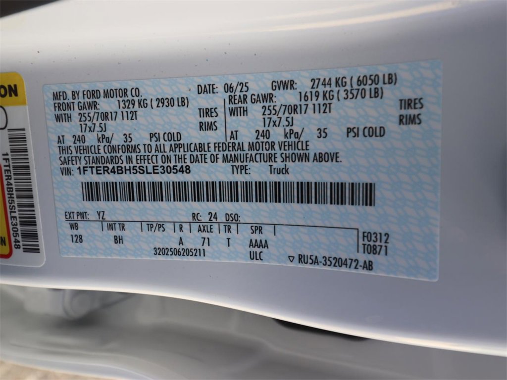 Oxford White 2025 Ford Ranger XL RWD 10-Speed Automatic EcoBoost 2.3L I4 GTDi DOHC Turbocharged VCT