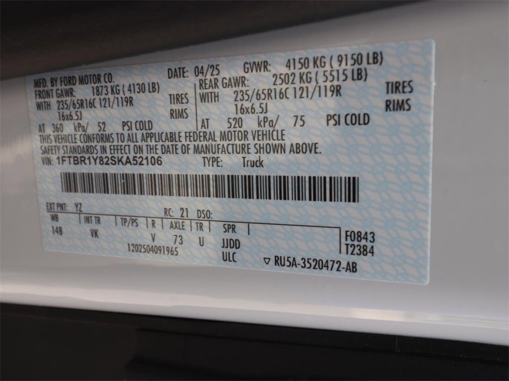 110V/400W Power Outlet, 2 Additional Keys (4 Total), 6 Cargo Tie-Down Hooks, Front & Rear Vinyl Floor Covering, Full Rear Compartment Lighting, Order Code 101A, Radio: AM/FM Stereo w/SYNC 3, Reverse sensing sys..