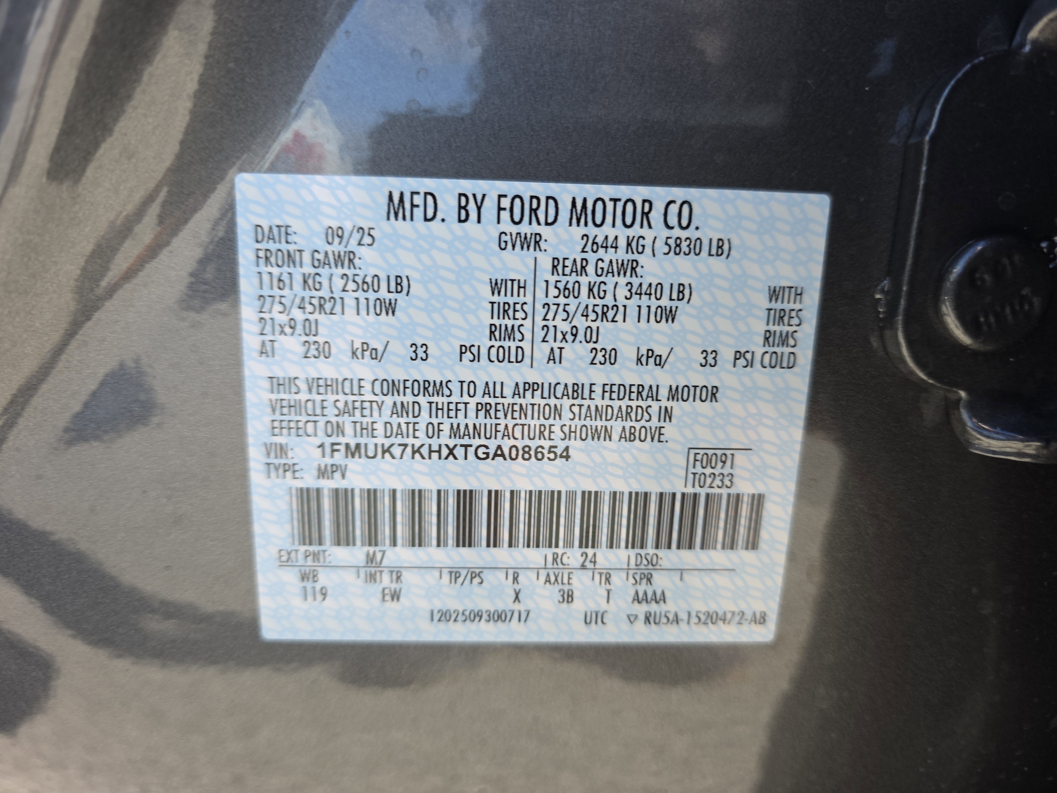 • VIN # 1FMUK7KHXTGA08654