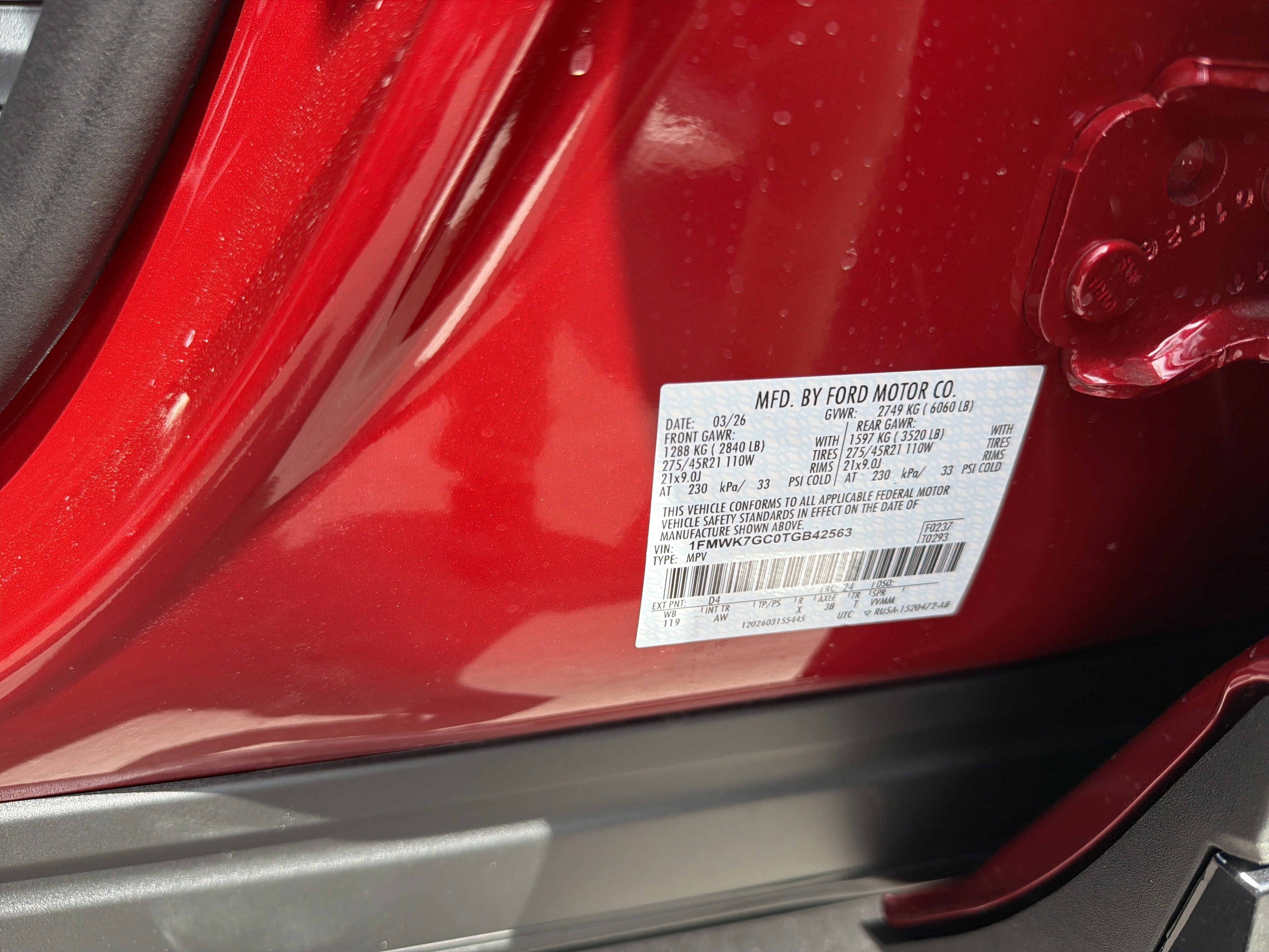 • VIN # 1FMWK7GC0TGB42563
