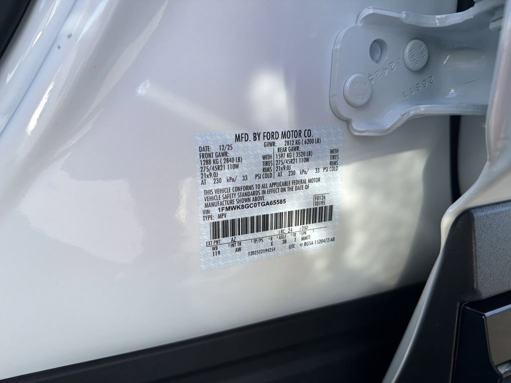 • VIN # 1FMWK8GC0TGA65585