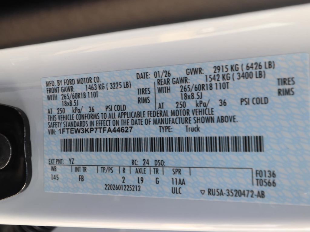 18" Painted Aluminum Wheels, 360 Degree Camera, 400W Pro Power Onboard (cab & Bed), 6" Black Running Boards, Adaptive Cruise Control with Stop and Go, Auto-Dimming Rear-View Mirror, Black Exterior Badging, Black Grille, Black Platform Running Boards, BlueCruise (equipment + 1 Year + 90-Day Plan), Body-Color Door Handles, Body-Color Front and Rear Bumpers, Chrome Front and Rear Bumpers, Cloth 40/20/40 Front Seat, Dark Interior Appliques, Dual-Zone Electronic Automatic Temperature Control, Electronic Locking with 3.55 Axle Ratio, Equipment Group 302A Mid, Ford Co-Pilot360 Assist 2.0, Ford Connectivity Package (1-Year Included), Front Parking Sensors, GVWR: 6,426 lbs Payload Package, Heated and Cooled front seats, Intelligent Access with Push Button Start, Power Glass Heated Sideview Mirrors, Power-Sliding Rear Window, Radio: AM/FM Stereo with SiriusXM 360L, Remote Start System with Remote Tailgate Release, SYNC 4 with Enhanced Voice Recognition, Towing Technology, Unique Sport Cloth 40/Console/40 Front-Seats, Wheels: 18" Gloss Black, Wrapped Steering Wheel, XLT Black Appearance Package.