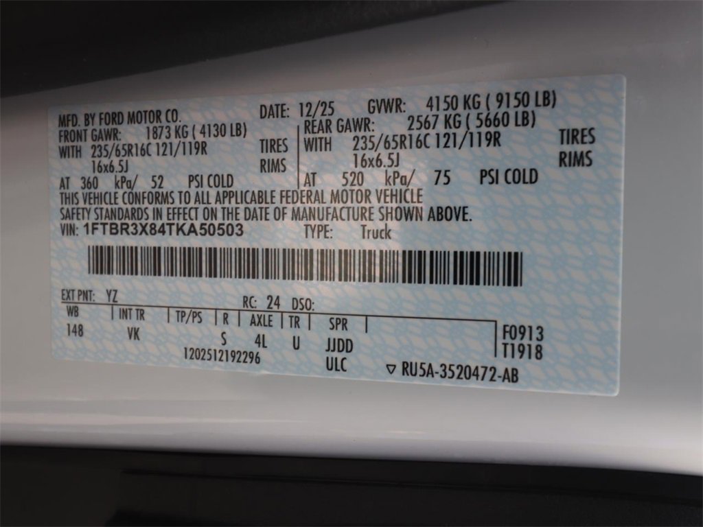 • VIN # 1FTBR3X84TKA50503