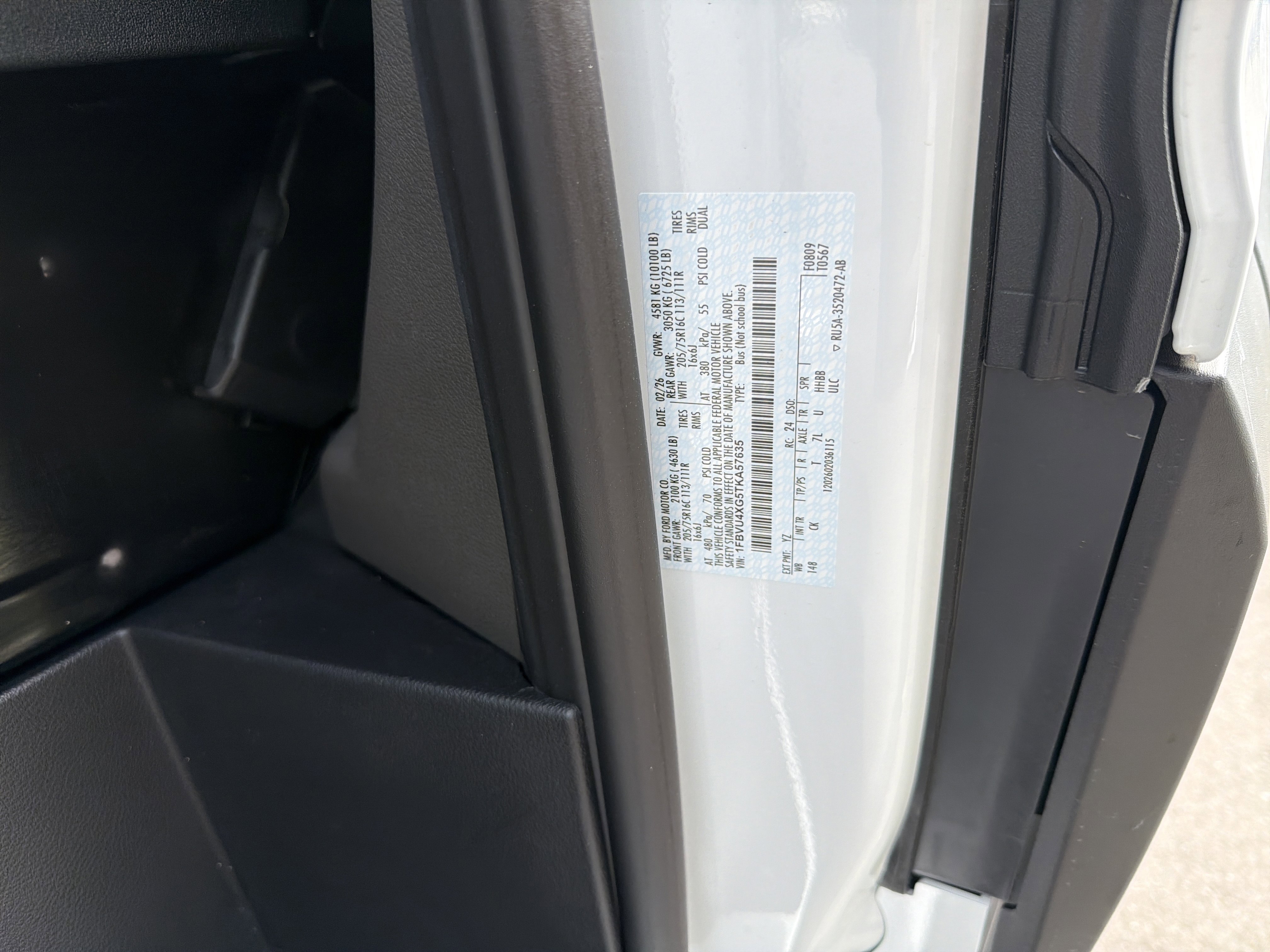 • VIN # 1FBVU4XG5TKA57635