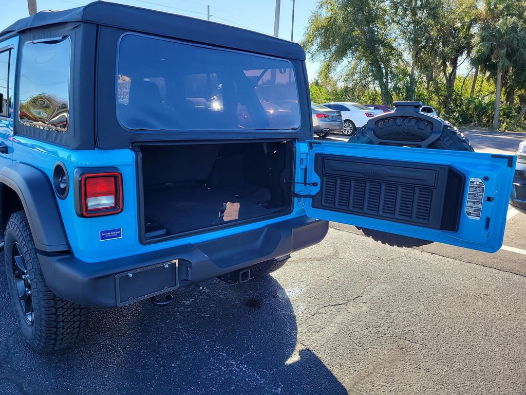 QUICK ORDER PACKAGE 22K WILLYS SPORT -inc: Engine: 2.0L I4 DOHC DI Turbo w/ESS Transmission: 8-Speed Automatic (850RE) Willys Mold In Color Bumper w/Gloss Black Black Trail Rated Badge 4-Wheel Drive Swing Gate Decal Black Grille MOPAR All-Weather Floor Mats Willys Hood Decal Rock Protection Sill Rails Wrangler Decal Matte Black Jeep Badge