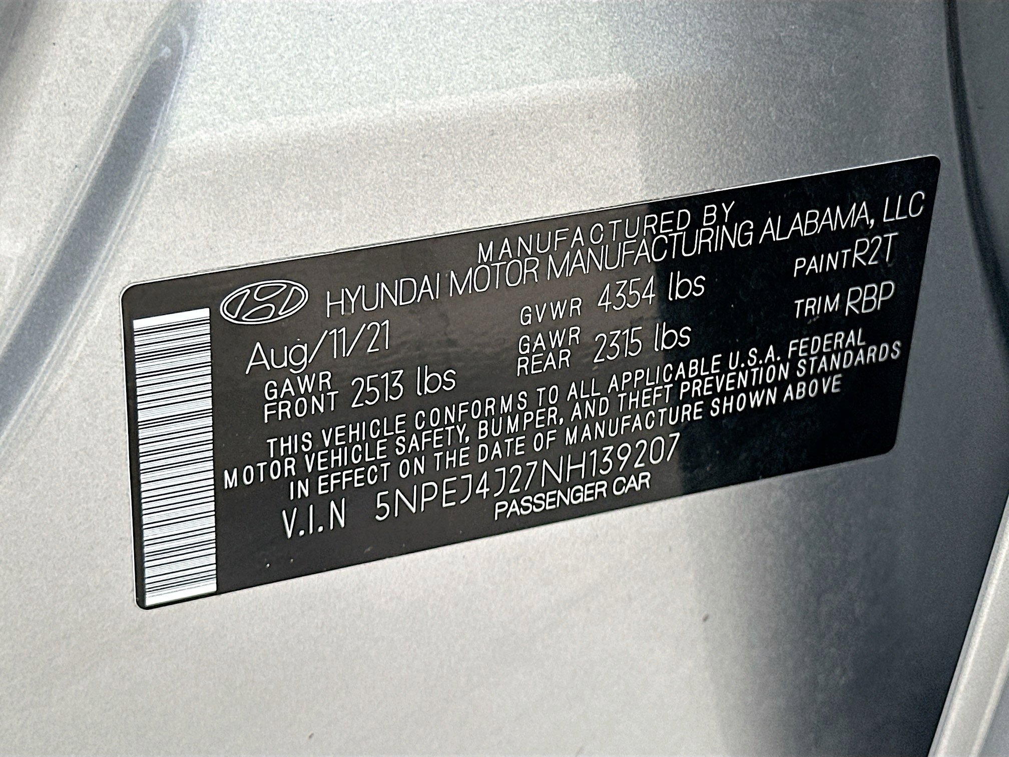 • VIN # 5NPEJ4J27NH139207