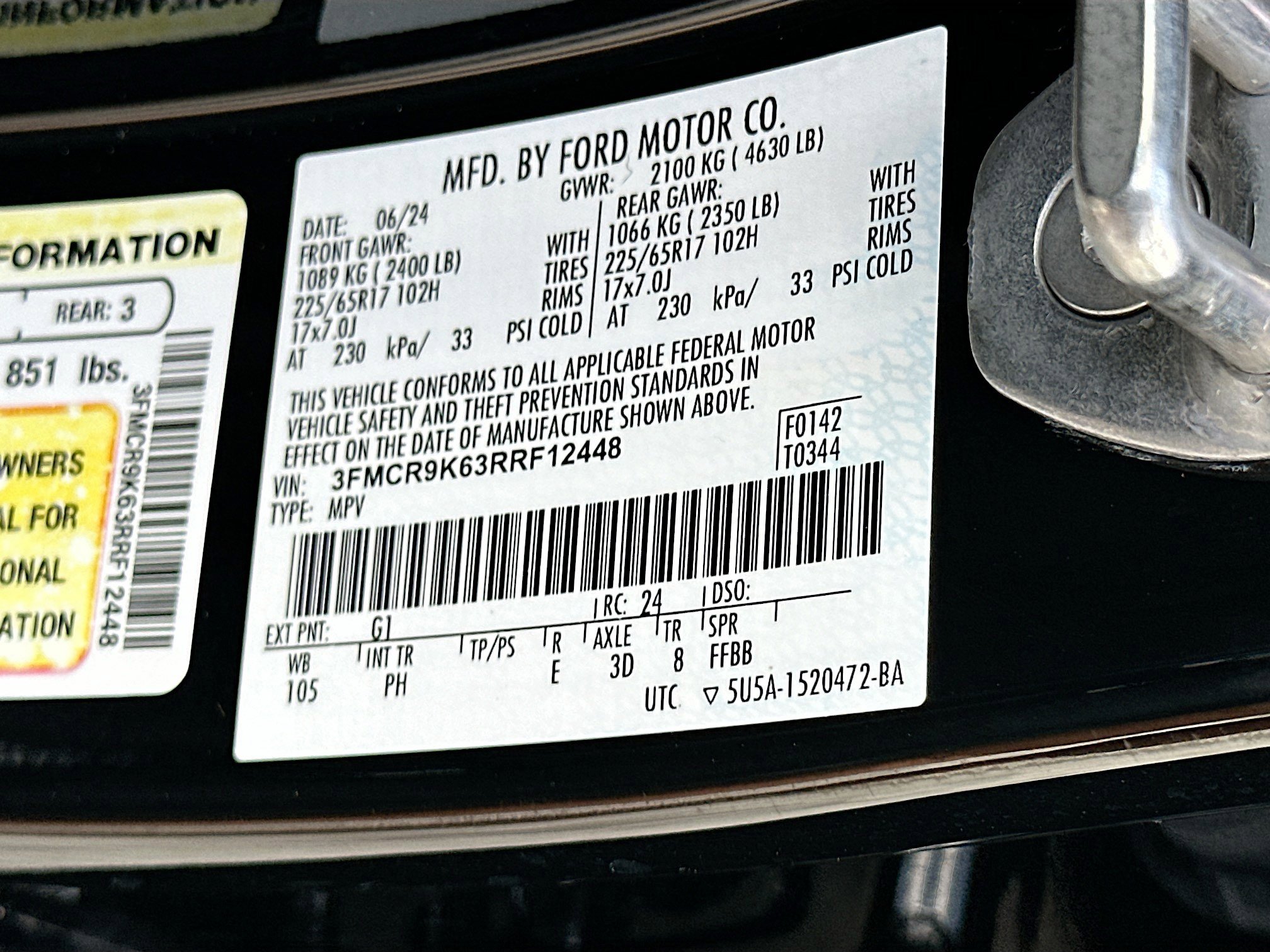 • VIN # 3FMCR9K63RRF12448