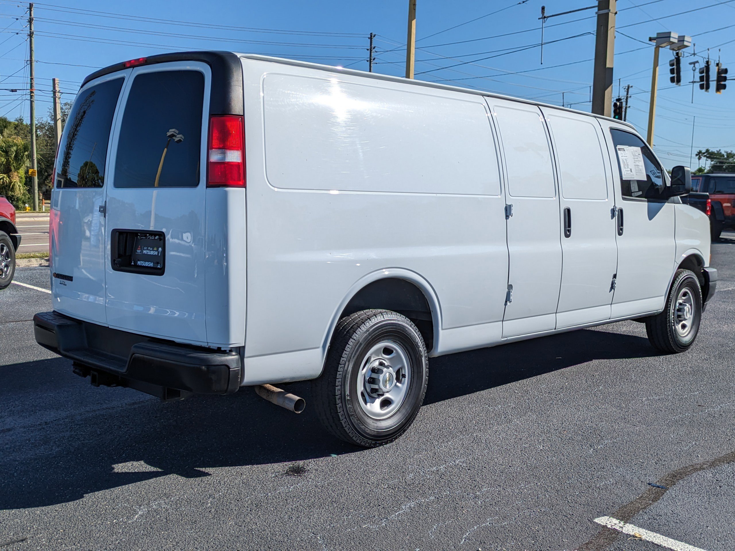 St Pete Mitsubishi Certfied Program Certified, 16" x 6.5" Steel Wheels, 2 Speakers, 3.42 Rear Axle Ratio, 4-Wheel Disc Brakes, 8-Point Digital Compass, ABS brakes, Air Conditioning, AM/FM radio, AM/FM Stereo w/MP3 Player, Auxiliary Lighting, Bluetooth® For Phone, Cruise Control, Delay-off headlights, Driver & Front Passenger High-Back Bucket Seats, Driver & Front Passenger Vinyl Visors, Driver Convenience Package, Driver door bin, Driver's Seat Mounted Armrest, Dual front impact airbags, Dual front side impact airbags, Electronic Stability Control, Emergency communication system: OnStar and Chevrolet connected services capable, Exterior Parking Camera Rear, Fixed Rear Door Window Glass, Front anti-roll bar, Front Bucket Seats, Front Reclining High-Back Bucket Seats, Front wheel independent suspension, Full-Length Black Rubberized-Vinyl Floor Covering, Fully automatic headlights, Heated door mirrors, Heavy-Duty Rear Locking Differential, Leather-Wrapped Steering Wheel, Low tire pressure warning, Occupant sensing airbag, Overhead airbag, Passenger cancellable airbag, Passenger door bin, Passenger seat mounted armrest, Power door mirrors, Power steering, Power windows, Preferred Equipment Group 1WT, Reading Lights, Rear Door Glass, Remote Keyless Entry, Seat-Mounted & Roof-Rail Side-Impact Airbags, Single-Zone Manual Air Conditioning, Steering Wheel Mounted Audio Controls, Tachometer, Theft Alarm Notification, Tilt Steering Wheel, Traction control, Trip computer, Underhood Lights, Variably intermittent wipers, Vinyl Seat Trim, Voltmeter, New Maket Price!!, ST PETE MITSUBISHI CERTIFIED PROGRAM, BEST PRICE, BEST SELECTION!, WE DELIVER ANYWHERE!, SMART FINANCE OPTIONS!, GREAT CARGO VAN SELECTION!, PRICED RIGHT DAILY!, STRESS FREE PAYMENT PLANS FOR EVERYONE!, HOME DELIVERY, CURBSIDE PICKUP! ITS EASY!, INTERNET BUYERS! PLEASE DONT DELAY!.